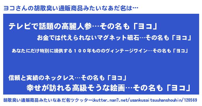 | ヘコむあだ名 | 『レバニラ』『ヨコお』『ヨコふぇ~』 |