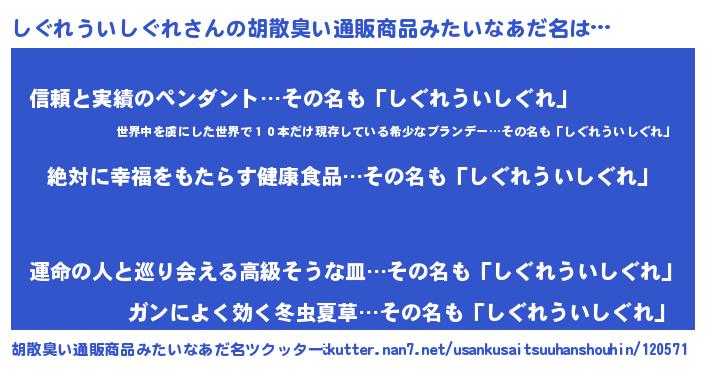 | ヘコむあだ名 | 『しぐれういしぐれ(笑)』『しぐっちょ』 |
