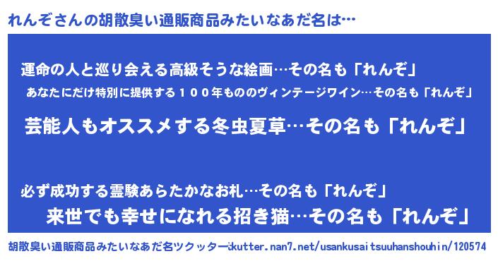 | 男性向けラノベタイトル風あだ名 | 『Re:れんぞから始める異世界生活』 |