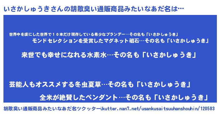 | ヒーロー風カッコイイあだ名 | 『ネオイサカシュウキ』『仮面イサダー』 |