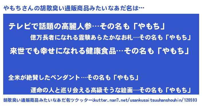 | ヘコむあだ名 | 『やもち(爆)』『豆乳』『やもを』 |