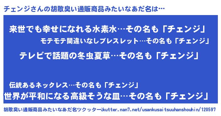 | 意味不明あだ名 | 『自称チェンジ』『永久保存チェンジ』 |