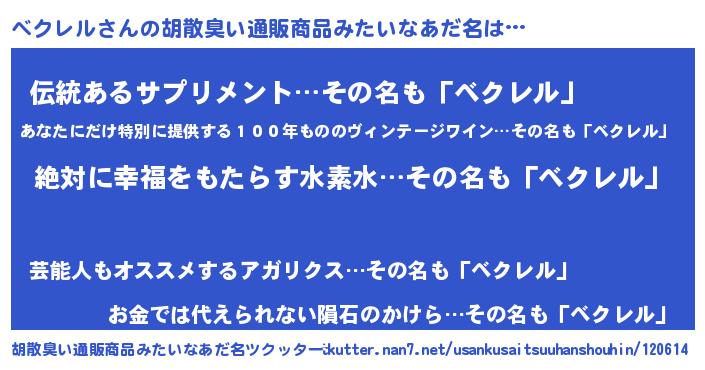 ベクレルさんの胡散臭い通販商品みたいなあだ名をツクッター!