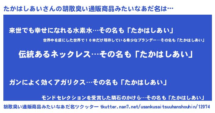 | 男性向けラノベタイトル風あだ名 | 『たかはしあいの嫁は女の子じゃないと思った?』 |