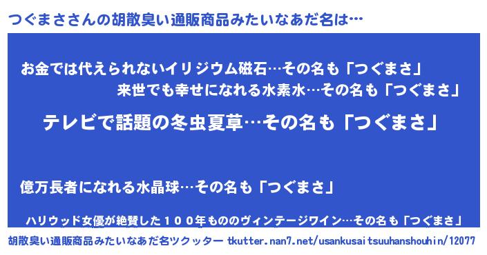 | 意味不明あだ名 | 『自称つぐまさ』『なめこ科つぐまさ属』 |