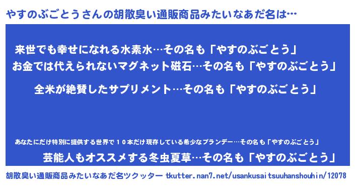 | 意味不明あだ名 | 『とにかく怪しいやすのぶごとう』 |
