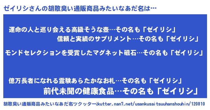 | ヘコむあだ名 | 『酢こんぶ』『ゼイリシ(震え声)』 |