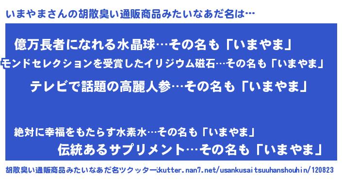 | ヘコむあだ名 | 『いまにー』『いまっぺ』『牛乳』 |