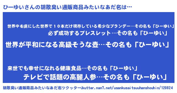 | ヘコむあだ名 | 『豆乳』『ひーっふぃ~』『ひーを』 |