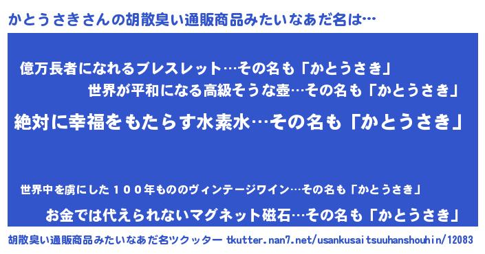 | ヒーロー風カッコイイあだ名 | 『ネオカトウサキ』『スーパーカトウサキ』 |