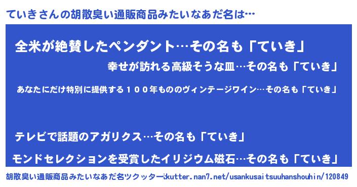 | 意味不明あだ名 | 『住所不定無職ていき(11歳)』 |