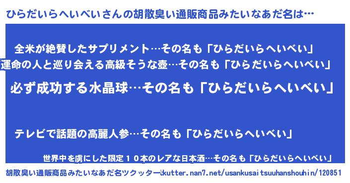 | ヘコむあだ名 | 『ひらにゅー』『ひらぷりん』 |