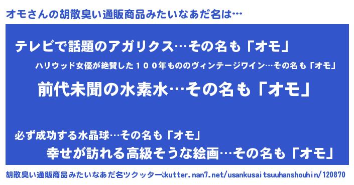 | ヘコむあだ名 | 『オモ(遠い目)』『豆乳』『オモ太郎』 |