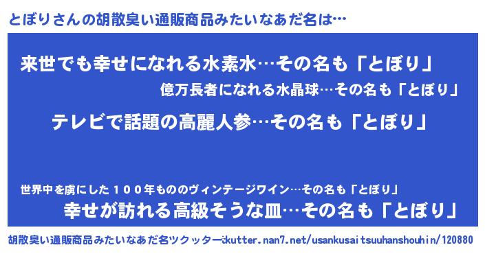 | ヒーロー風カッコイイあだ名 | 『サイバー戦士トボリ』『ネオトボリ』 |