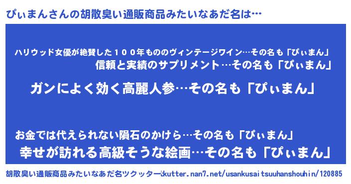 ぴぃまんさんの胡散臭い通販商品みたいなあだ名をツクッター!