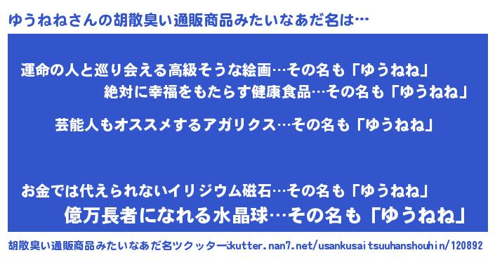 | 意味不明あだ名 | 『自称ゆうねね』『ゆうねねフォーエバー』 |