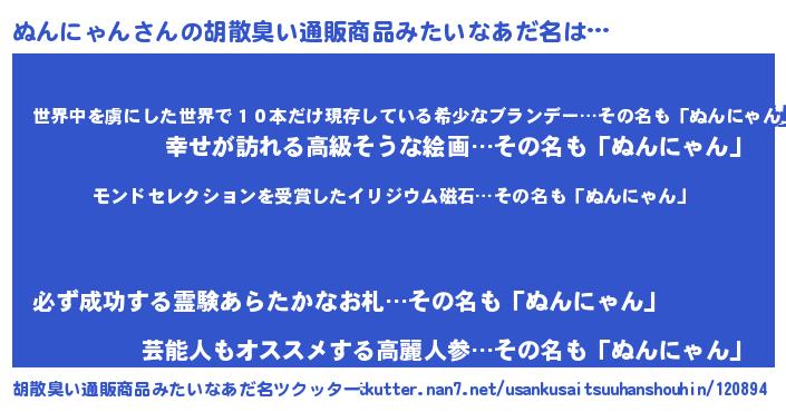 | ヒーロー風カッコイイあだ名 | 『天空の使者ぬんにゃん』『仮面ヌンダー』 |