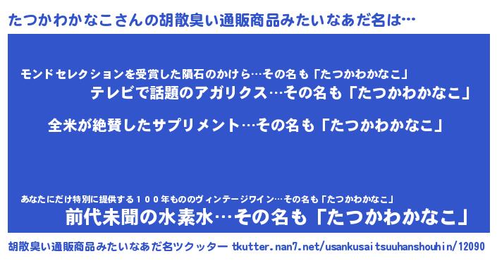| 意味不明あだ名 | 『とにかく怪しいたつかわかなこ』 |