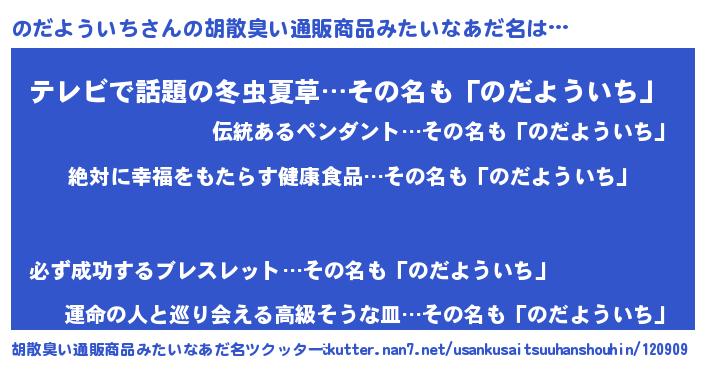 | ヘコむあだ名 | 『のだよういち(爆)』『なまこ酢』 |