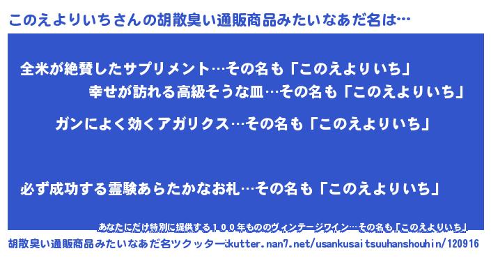 | 肩書あだ名 | 『このえよりいち閣下』 |