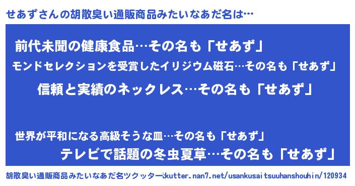 | 意味不明あだ名 | 『とにかく怪しいせあず』『自称せあず』 |