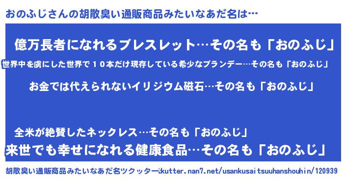 | 男性向けラノベタイトル風あだ名 | 『ノーゲーム・ノーオノフジ』 |