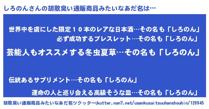 | ヒーロー風カッコイイあだ名 | 『最強戦士シロノン』『仮面シロダー』 |