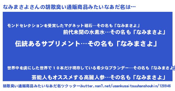 | 意味不明あだ名 | 『とにかく怪しいなみまさよ』 |