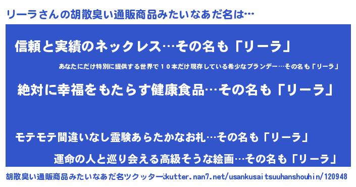 | 男性向けラノベタイトル風あだ名 | 『リーラという概念が存在しない退屈な世界 』 |
