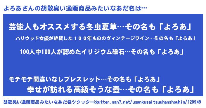 | 欧米人風あだ名 | 『アンジェラ・よろあ』『ダニエルよろあ』 |