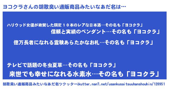 | 意味不明あだ名 | 『ペロリンヨコクラ』『永久保存ヨコクラ』 |