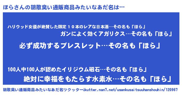 | ヘコむあだ名 | 『ほらにー』『ほら(笑)』『ほらお』 |