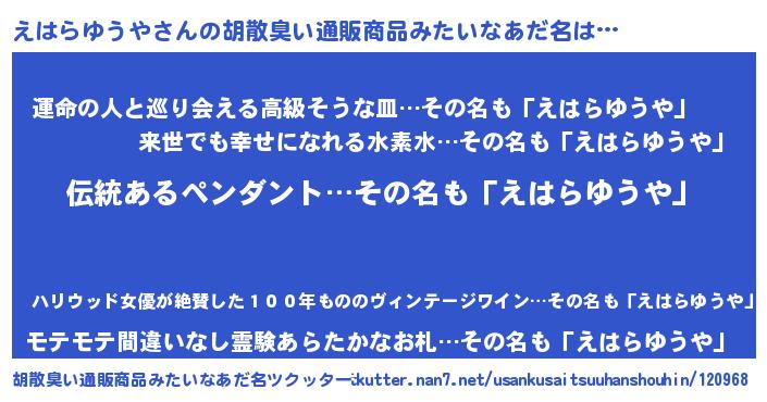 | 意味不明あだ名 | 『とにかく怪しいえはらゆうや』 |