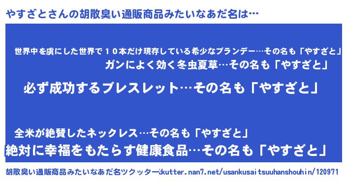 | ヘコむあだ名 | 『やすにー』『やすざと(遠い目)』 |