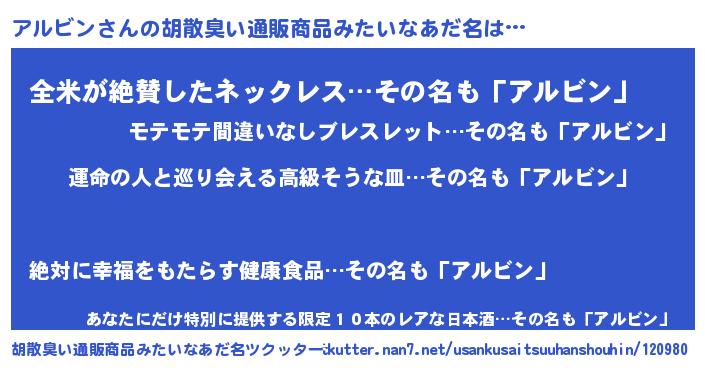 | ポケモン風あだ名 | 『アルビダネ』『ヒアルビン』 |