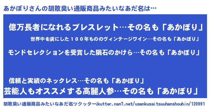 | 意味不明あだ名 | 『眠気覚ましガムあかぼり味』 |