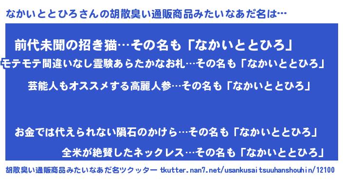 | 意味不明あだ名 | 『自称なかいととひろ』 |