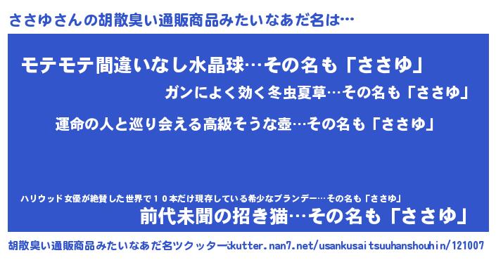 | 意味不明あだ名 | 『ささゆフォーエバー』『ペロリンささゆ』 |