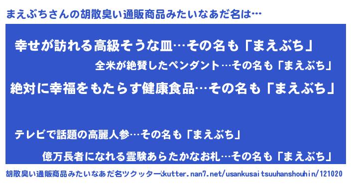 | ヘコむあだ名 | 『まえぶち(笑)』『牛乳』『まえっ子』 |