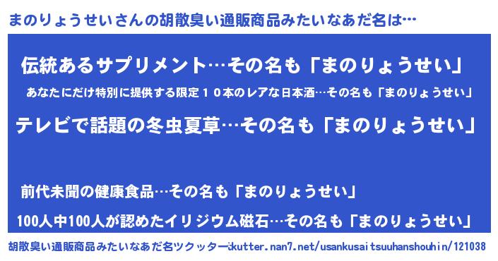 | 意味不明あだ名 | 『自称まのりょうせい』 |