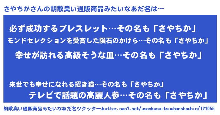 | 意味不明あだ名 | 『さやちかフォーエバー』『自称さやちか』 |