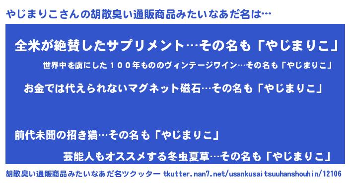 | ヘコむあだ名 | 『やじを』『やじまりこ(小並感)』 |