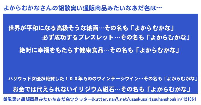 | 欧米人風あだ名 | 『トリンドルよからむかな』 |
