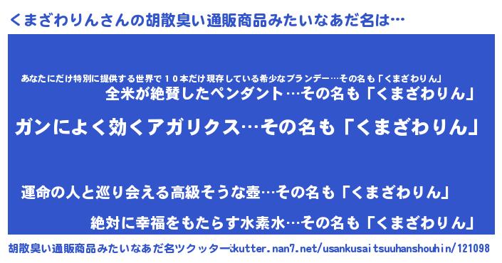 | 女子向けラノベタイトル風あだ名 | 『くまざわりんなんてお断りですっ。』 |