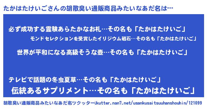 | 肩書あだ名 | 『たかはたけいご大統領』 |