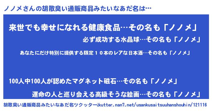 ノノメさんの胡散臭い通販商品みたいなあだ名をツクッター!