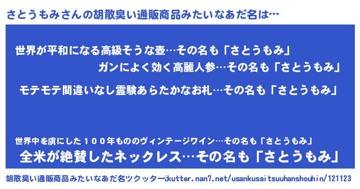 | 肩書あだ名 | 『さとうもみ御曹司』『さとうもみ大統領』 |