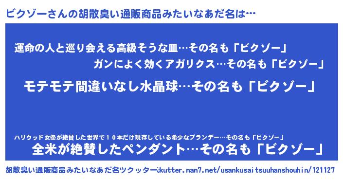 | 男性向けラノベタイトル風あだ名 | 『ビクゾーの憂鬱』 |