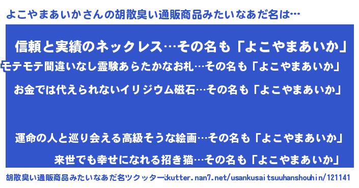 | 意味不明あだ名 | 『眠気覚ましガムよこやまあいか味』 |