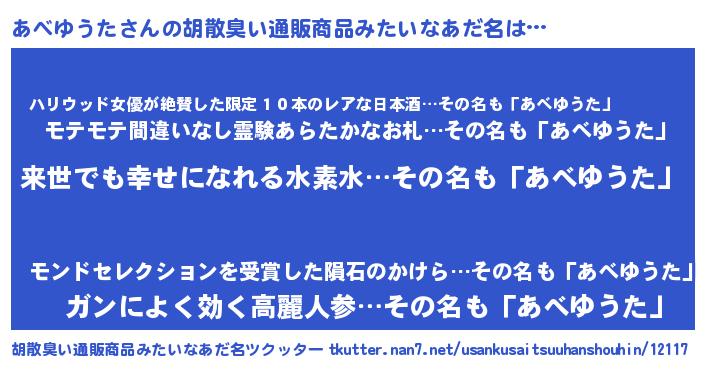 | 意味不明あだ名 | 『永久保存あべゆうた』『自称あべゆうた』 |